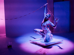 LIQUID traverses themes of currency, eco-grief, surveillance, violence and monetization of the feminine, centering the experience of the female body as it suspends between the unstable binary ways of online and offline, real and virtual, private and public.